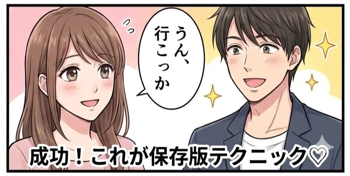 ③最後に、積極的で自信を持ってホテルの提案をしましょう。このテンプレートをマスターすれば、誘い方が格段にスムーズになり、成功率が上がります。